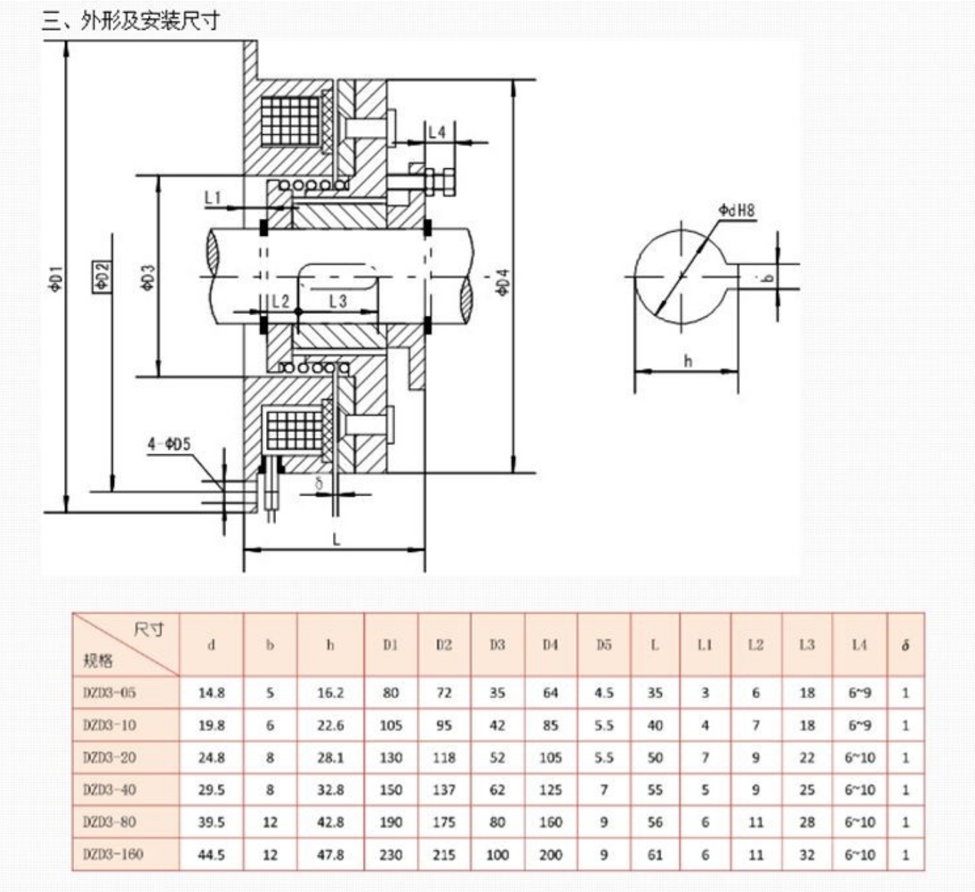 DZD3系列系干式單片通電型制動器。該產品結構簡單、制動延遲時間短制動力矩大。優點是:可水平安裝也可垂直安裝,不受安裝角度影響,消除了電機軸向竄動對制動器氣隙要求較高的影響。