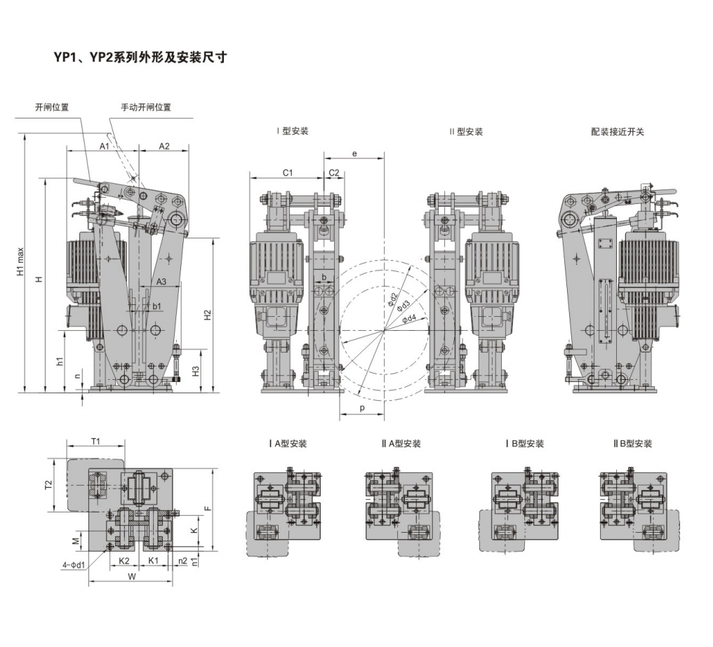 YP1.YP2.YP3系列電力液壓盤式制動器是一種高性能、多功能的先進產品。由于其具有瓦塊退距自動均等,襯墊磨損自動補償等先進功能,使用過程中維護非常便捷。通過增設各種限位開關,可給主機PLC提供所需要的聯鎖保護信號。非常適合各種現代的大型裝卸機械、起重運輸機械、冶金設備、礦山設備及工程機械中各種機構的減速和維持(停車)制動。